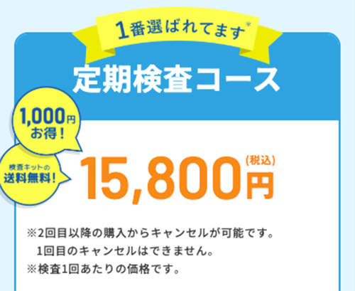 定期コースなら1回あたり15,800円とかなり安価で検査を受けることができるので、定期的な検査でもお財布に優しいのも嬉しいポイント♪